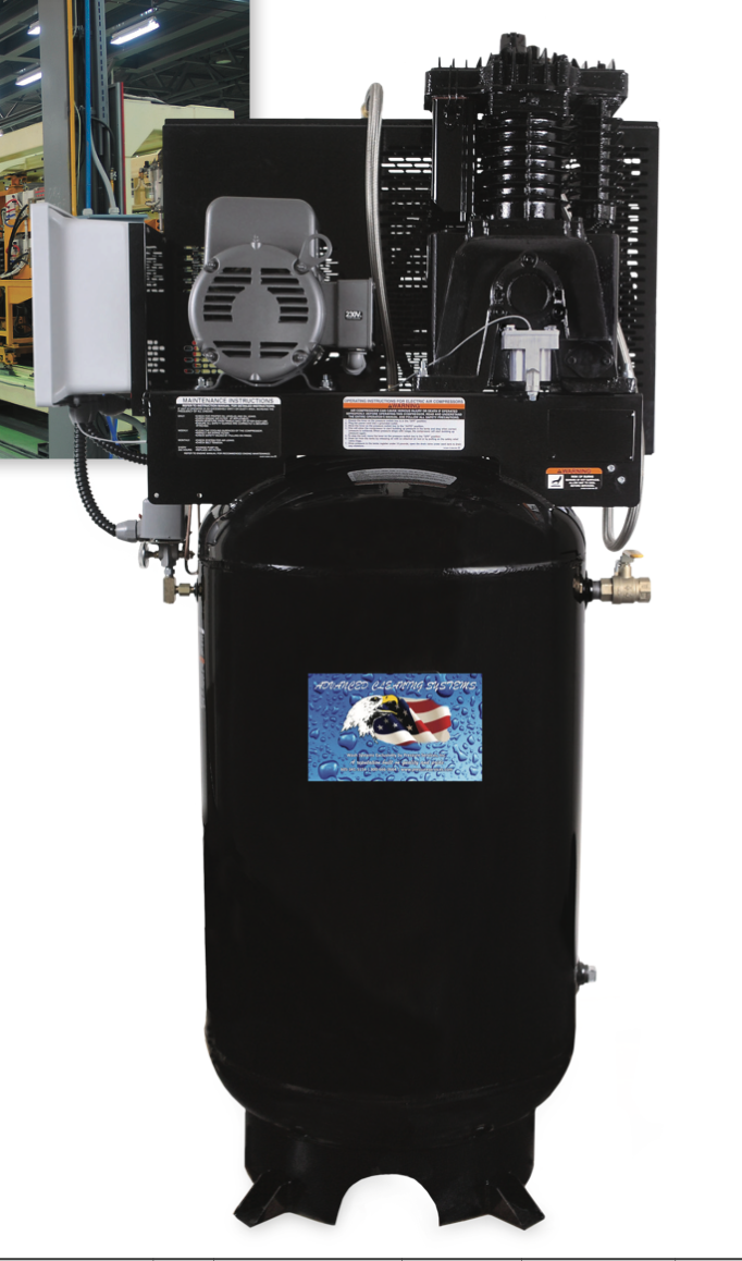 ADVANCED CLEANING SYSTEMS Industrial air compressors are manufactured using only the highest quality components combined with a tough powder coat finish. Designed for reliability, we offer models that range from moderate to high-demand applications in construction, car wash, commercial, and industrial settings.