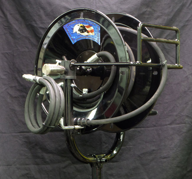 ACS-SWVL-SE38X150 – Hot Water Swiveling Hose Reel designed to mount directly on Hot Water Pressure Washers. Holds up to 150 ft. of 3/8” High Pressure Hose.