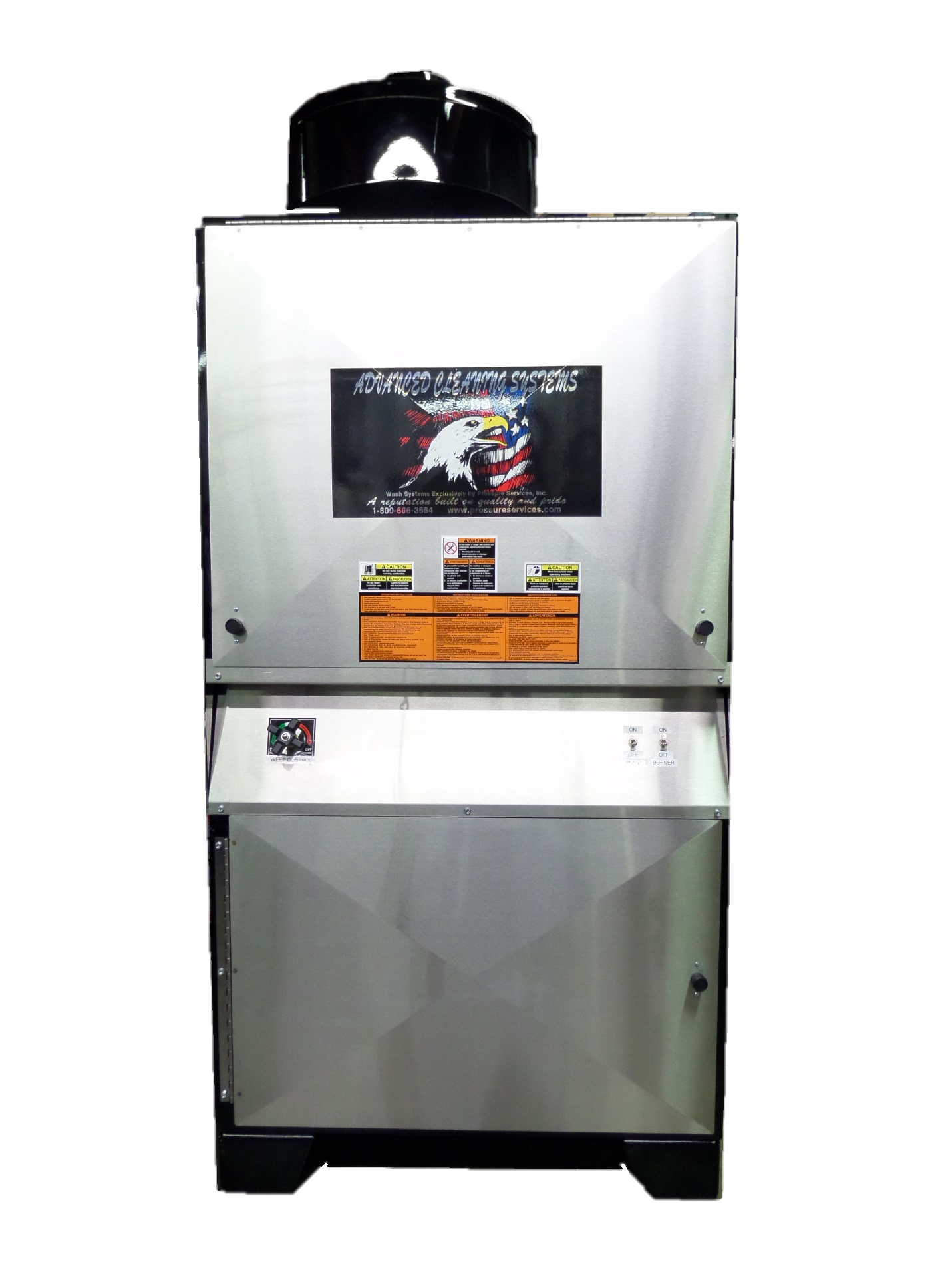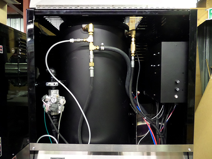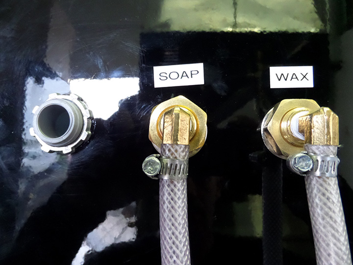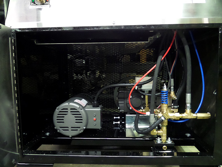 Heavy Duty Steel Frame with Gloss Black, Powder Coat Finish and Stainless Steel Access Panels (3), which make our equipment built to last. Natural / LP On-Demand Gas-Fired 180,000 Input BTU Burner Systems generate approximately 130° F. water cost-effectively. Belt-driven, triplex oil bath pumps, elevated float tank and safety valves ensure reliable performance. Unit comes standard with 2 solenoids (adjustable) that are remotely controlled by 24V. Optional electronic remote controls the pump, burner, and two chemical solenoids.