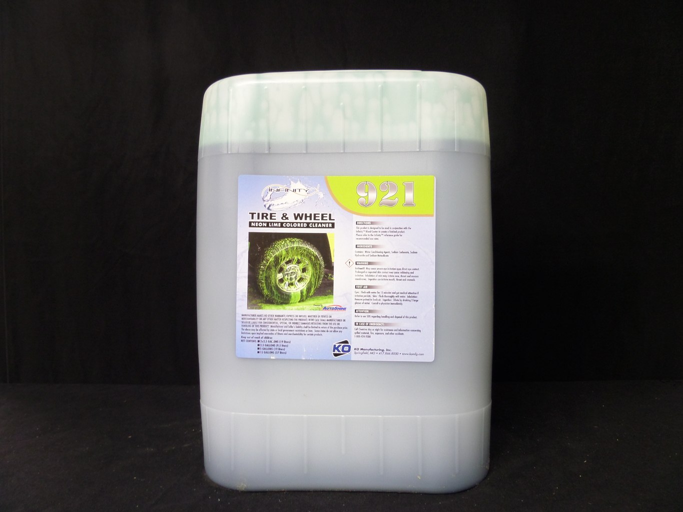 The Infinity™ Tire & Wheel Neon Lime Colored Cleaner is designed to be used exclusively in conjunction with the Infinity™ Blend Center and the Infinity™ Base Powder Alkaline Detergents. This product delivers unsurpassed levels of cleaning power & show. Smaller packaging allows for more space, less hassle, & reduced shipping costs. Removes brake dust, oil, & grime. Provides lemon lime scent w/ neon lime suds.